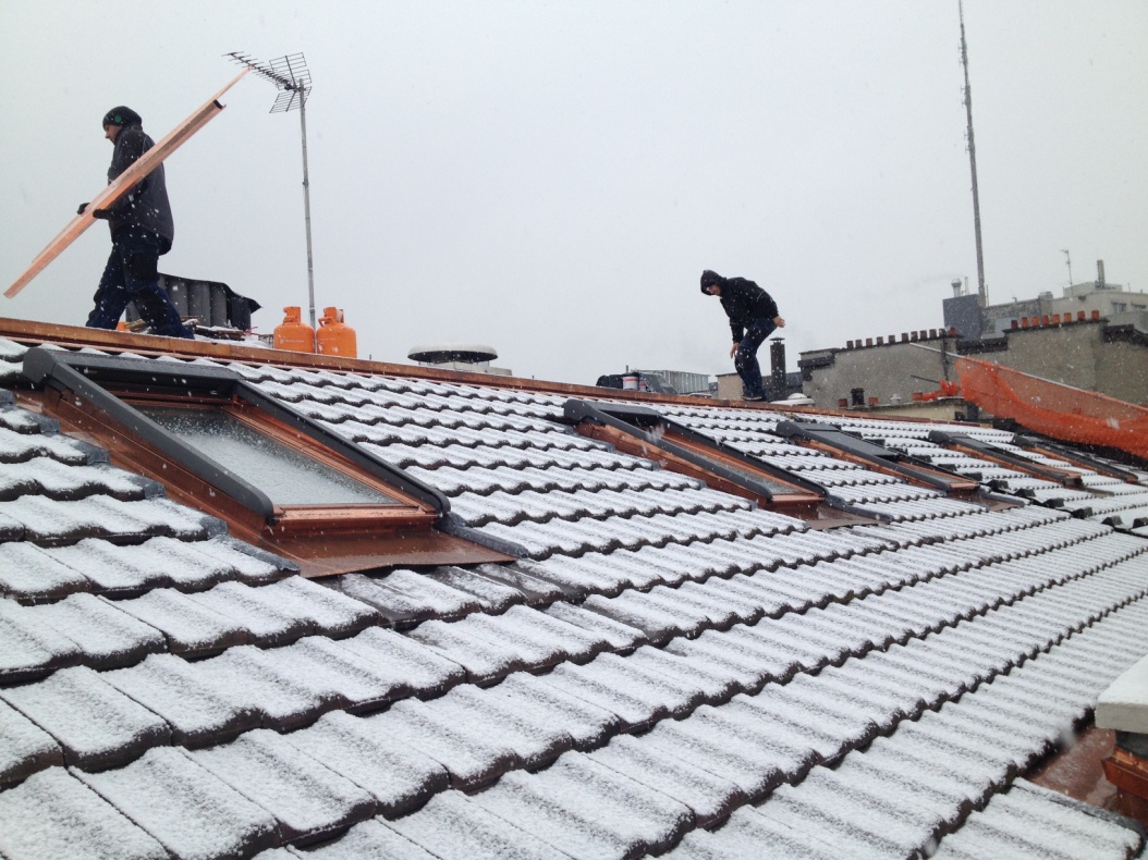 Description des travaux : Réalisation de couvertute en tuile plates - Lucarne en ferblanterie - Etanchéité et isolation toiture plate.